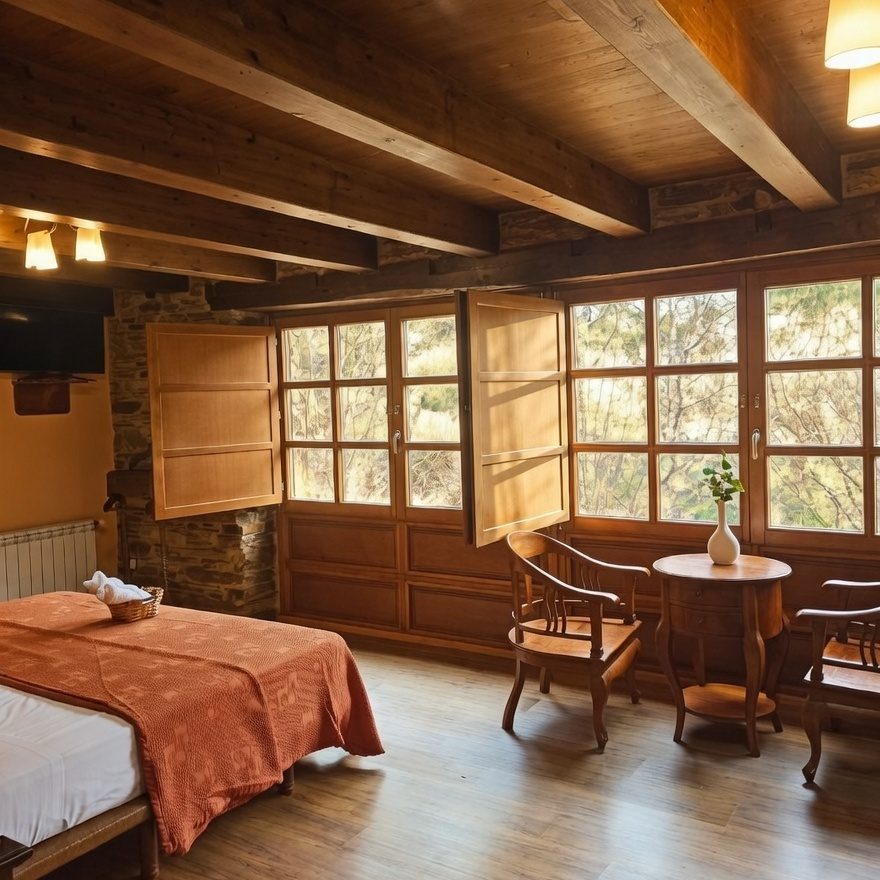 Nuestra casa de aldea típica gallega está situada en un entorno natural único, entre montañas y a la orilla del río Das Reigadas. Ofrecemos una estancia marcada por la tranquilidad, la autenticidad y la excelencia de la cocina tradicional gallega, ideal para quienes desean desconectar y conectar con la cultura local.