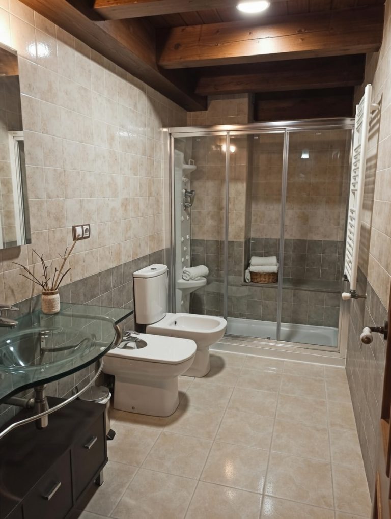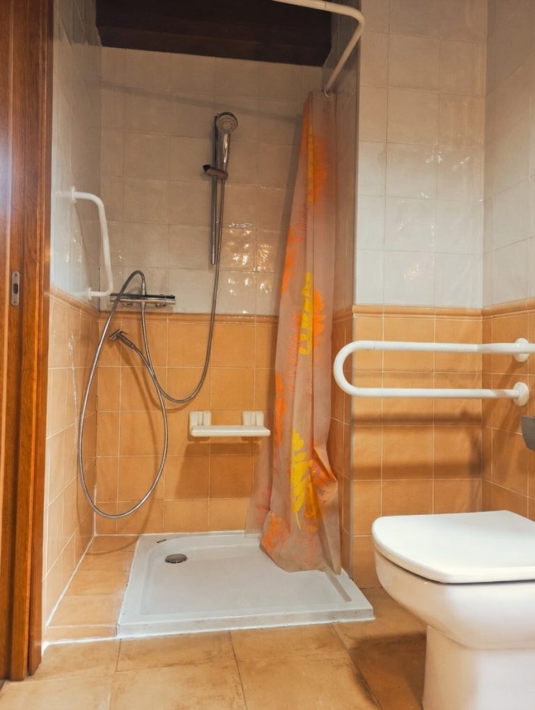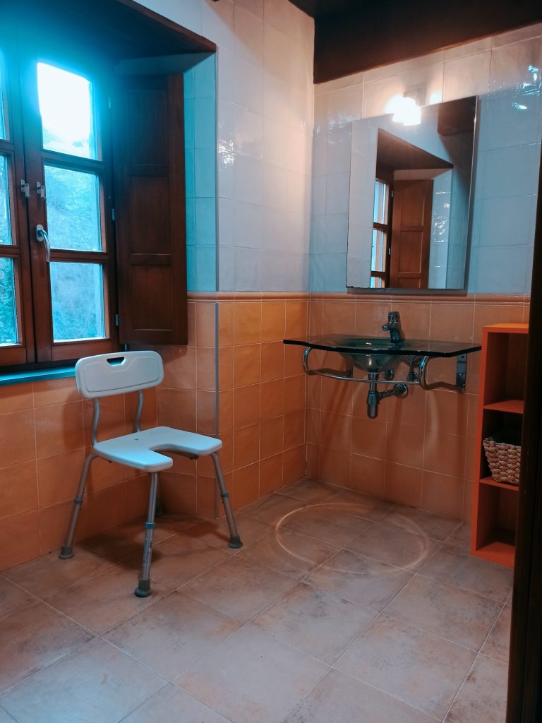Disponemos de una habitación adaptada para personas con mobilidad reducida, ubicada en planta baja para un acceso cómodo. La entrada es amplia y el baño está equipado con plato de ducha, silla y barras de apoyo, ofreciendo seguridad y bienestar sin renunciar al encanto de la casa.
